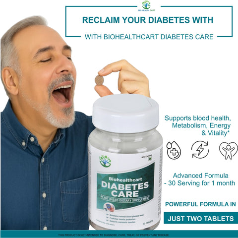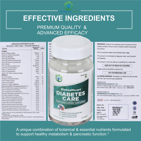 Biohealthcart Diabetic care supports the 3 essentials for healthy blood sugar - Sugar absorption, Sugar production, Sugar Usage & overall wellness.